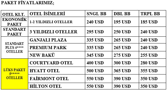 Firmaya bildirilen saat ve tarihte İstanbul Havalimanı veya Sabiha Gökçen Havalimanı’ndan yapılacak uçuşun ardından Bakü Havalimanı’na iniş sonrası, rehberlerimizle buluşma ve ardından seçilen otele ulaşım gerçekleşecektir.